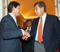 Roberto Campa y Cuauhtémoc Cárdenas tras su encuentro en un hotel capitalino