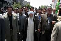 El ayatola Ahmad Jannati, líder del poderoso Consejo de Custodia de Irán, asiste a la ceremonia fúnebre de cinco militares ultimados durante la guerra contra Irak (1980-1988), cuyos restos fueron recuperados recientemente