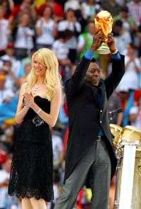 El astro brasileño del futbol Pelé y la modelo alemana Claudia Schiffer fueron los encargados de presentar la Copa de FIFA