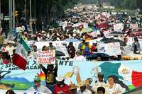 Marcha de la Coordinadora Nacional de Trabajadores de la Educación y otras organizaciones en apoyo al magisterio de Oaxaca, ayer del Monumento a la Independencia al Zócalo capitalino