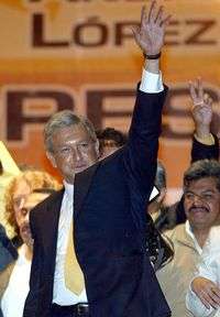 Ampliar la imagen Después del debate del 6 de junio, los candidatos presidenciales Andrés Manuel López Obrador y Felipe Calderón festejaron con sus respectivos simpatizantes FOTOMarcoPeláezyJoséAntonioLópez