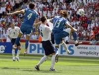 Descontrolados, con pases imprecisos, uno de esos errores derivó en una falta innecesaria en el medio sector, desde donde disparó Beckham para que Gamarra peinara y dejara sin opción a su portero. Esa acción selló la primera conquista del equipo de La Rosa en Alemania y encendió aún más el grito de "¡Here we go, here we go!"