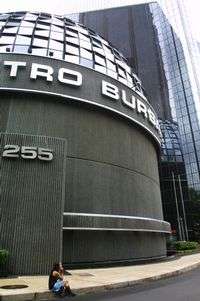 Las caídas en el precio de las acciones bursátiles afectaron sobre todo a los títulos de los grandes corporativos del mercado local, que se encontraban en poder de extranjeros. Fachada de la bolsa mexicana