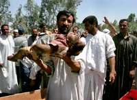 Un iraquí lleva en brazos el cuerpo de un niño que murió ayer durante un ataque de fuerzas estadunidenses cerca de Baquba; en la acción también perdió la vida otro menor