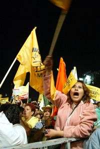 Simpatizantes perredistas festejaron anoche en el Monumento a la Revolución, al término del debate