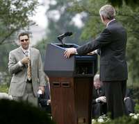 En un jardín de la Casa Blanca, el reportero de Los Angeles Times, Peter Wallsten, preguntó el miércoles a George W. Bush sobre la filtración de la identidad de una agente de la CIA, a lo que el presidente respondió con bromas por sus lentes oscuros en un día nublado, sin saber que el periodista padece una enfermedad que lo tiene casi ciego