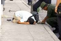 Una hora y diez minutos después del atentado llegaron agentes de la Procuraduría General de la Republica (PGR) y del Ejército Mexicano; estos últimos retiraron de la mano del occiso una granada de fragmentación y otras cuatro que llevaba en una mochila de lona.