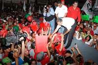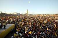 Torreón, Coah., 15 de junio. Sobre el vado seco y polvoso de lo que fue el río Nazas, más de 30 mil personas escucharon el optimismo desbordante del candidato presidencial de la coalición Por el Bien de Todos, Andrés Manuel López Obrador, quien provocó un coro duro y pesado de sus simpatizantes exigiendo: "¡Quiera o no quiera, el PAN se va pa' fuera!"