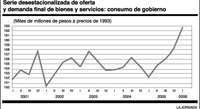 Los datos dados a conocer por el INEGI muestran que el primer trimestre de 2006 fue el de mayor consumo de gobierno en el transcurso de la actual administración federal.