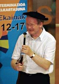 El líder del partido republicano irlandés Sinn Fein, Martin McGuinness (izquierda), con su homólogo del partido Batasuna, Arnaldo Otegi, el miercoles pasado en Pamplona. A la derecha, McGuinness, con una boina vasca tras expresar su apoyo al proceso de paz entre el grupo armado ETA y el gobierno de Madrid