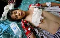 Un niño herido en uno de los ataques perpetrados ayer en Irak es atendido en un hospital. A la derecha, hermanos de una de las víctimas de un bombazo en Bagdad