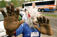 Un opositor del candidato presidencial Felipe Calderón parodia el lema de ''manos limpias'' del panista FOTOReuters