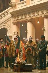 Evo Morales, presidente de Bolivia (extremo derecho), ayer en una ceremonia aymara para bendecir el palacio de gobierno en La Paz