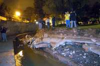 Mario Alberto Juárez Mendoza, vecino de lugar, cuya casa se encuentra a unos metros del arroyo, dijo que aunque desde el año pasado rodea al afluente un muro de contención de 200 metros de largo, éste no sirvió de nada para detener el desfogue de las aguas.