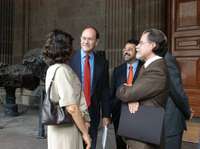 Enrique del Val, José de Jesús Franco López y León Olivé, antes de la inauguración del primer Congreso Iberoamericano de Ciencia, Tecnología, Sociedad e Innovación, en la UNAM
