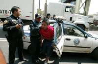 Uno de los implicados en el asalto es subido a una patrulla
