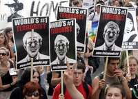 Viena, 21 de junio. El presidente George W. Bush se comprometió hoy aquí a respetar los derechos humanos en su lucha global contra el terrorismo, pero aseguró que los cientos de presuntos terroristas recluidos en la prisión de Guantánamo, Cuba, "son asesinos a sangre fría", en medio de protestas de miles de personas que repudiaron la presencia del mandatario estadunidense, quien participó en la cumbre que se celebra anualmente entre Estados Unidos y la Unión Europea (UE).