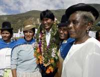 El presidente Evo Morales hace unos días con indígenas de la región cocalera de Irupana, Bolivia