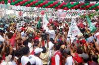 Y como paradoja de la política priísta, por la noche, en el mitin de cierre que encabezó Madrazo en la ciudad de Mérida, fue justamente la ex dirigente del tricolor Dulce María Sauri, una de sus más violentas detractoras, quien no sólo lo recibió con un ramo de flores, sino que lo escoltó hasta el templete ubicado en la plaza principal, frente al palacio de gobierno que habitan los panistas.