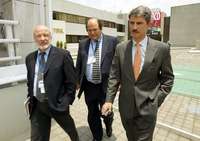 Los observadores electorales José Ignacio Salafranca, Antonio Reis y Luis Hermosillo, al término de su visita al IFE