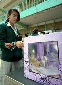 Una estudiante de la secundaria diurna 75, en la colonia Magdalena Mixhuca, durante un simulacro de la Consulta Infantil y Juvenil 2006