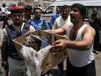 Un iraquí muestra los restos de su hermano, abatido en un ataque suicida perpetrado en Basora, que dejó al menos otros nueve muertos