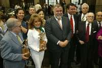 El jefe de Gobierno del DF, Alejandro Encinas, dialogó con los galardonados al término de la ceremonia realizada en el edificio del Antiguo Ayuntamiento