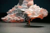 Ejecución de una bailaora en el teatro Albeniz, de Madrid, durante uno de los ensayos de la competencia de baile español y coreografía flamenca