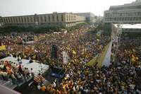 La Plaza de los Libertadores fue el escenario donde López Obrador se reunió con miles de simpatizantes que llegaron no sólo de Guadalajara, sino de otros municipios de Jalisco para escucharlo; ahí insistió en que los de Acción Nacional están muy enojados por las denuncias que ha hecho en torno al familiar incómodo de su contrincante Felipe Calderón. Sin embargo, irónico parafraseó a Vicente Fox al señalar: "¿Y yo por qué?", entre la risa de sus seguidores, que ayer le festejaron todo.