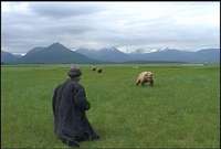 Una relación más fructífera entre hombre y bestia es examinada en La historia del camello que llora, de Byambasuren Davaa y Luigi Falorni, la cual se sitúa en el seno de una familia nomádica en el desierto de Mongolia. A la manera de Robert Flaherty, los realizadores conducen una puesta en escena con sus sujetos, de tal manera que hablan entre ellos y nunca reconocen la presencia de la cámara. Sólo la mención de la necesidad de unas pilas eléctricas y una posterior visita a un centro comercial nos informan que el asunto es contemporáneo, porque en cuanto a la vida cotidiana, los mongoles siguen usos y costumbres milenarios; lo cual incluye un trato simbiótico con los camellos, animales fundamentales en tanto proporcionan transporte, lana y alimento.