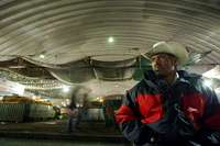 Dos escenas de madrugada en el mercado de flores y hortalizas de la Central de Abastos de la ciudad de México