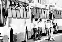 Trolebuses varados sobre el Eje Central Lázaro Cárdenas, por la falta de suministro de energía eléctrica