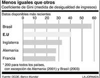 En privado, algunos políticos admiten que las tendencias recientes los tienen preocupados, y no sólo por las elecciones de noviembre. Las estadísticas sugieren que el auge económico puede desvanecerse. Los estadunidenses aún se dirigen a las tiendas con gusto, pero no es el crecimiento económico real, sino los bajos índices de ahorro y las deudas crecientes (a causa de los altos precios inmobiliarios), lo que mantiene abiertas las carteras. Una quiebra podría conducir al descontento político y con el tiempo distorsionar la estructura social del país. ''Si las cosas siguen así por más tiempo'', especula una persona bien informada, ''vamos a terminar como Brasil'', país conocido por la concentración de sus ingresos y riqueza.