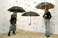 El paraguas, como todo mundo sabe, sirve para protegerse de la lluvia. Pero cuando las gotas de agua son sustituidas por rocas, por ejemplo, entonces hace alusión a otro tipo de agresiones, como bien expresa la instalación Lluvia de piedras, de Héctor de Anda.