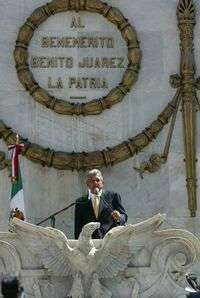 Vestido con traje oscuro, camisa blanca y corbata amarilla, el candidato presidencial también planteó que desea que "lo público ocupe el lugar que tuvo a lo largo de nuestra historia; vamos a devolverle a la República el sello que le imprimió un mexicano cuyo nombre es un símbolo: Benito Juárez".