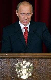 El presidente ruso, Vladimir Putin, durante una reunión con diplomáticos, ayer en Moscú