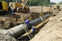 Aspecto de los trabajos de tendido del gasoducto al Báltico, cerca de Boksitogorsk, unos 300 kilómetros al oriente de San Petersburgo; la construcción de este ramal se inició en diciembre pasado
