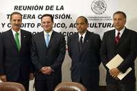Ampliar la imagen De izquierda a derecha, José Ernesto Elorduy, Eduardo Ruiz, Gerardo González y Héctor Osuna, candidatos propuestos por el presidente Vicente Fox a la Cofetel, durante una reunión de la comisión de Hacienda y Crédito Público y Telecomunicaciones del Congreso Foto: Francisco Olvera
