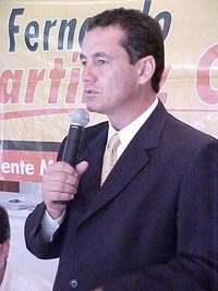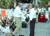El candidato del Partido Acción Nacional a la gubernatura de Morelos, Marco Antonio Adame, con el abanderado panista a la Presidencia, Felipe Calderón Hinojosa, en su reciente visita a la entidad. Abajo, el aspirante de la coalición Por el Bien de Todos, Fernando Martínez Cué