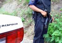 Agentes de la Secretaría de Protección y Vialidad custodian los alrededores del palacio municipal de Acapulco. La mañana de ayer fue encontrada en las escaleras de la entrada principal del ayuntamiento una bolsa que contenía la cabeza de un hombre y una nota que decía: ''Lazcano, para que me sigas mandando más pendejos de tus Gafes''. Un día antes se encontró un cuerpo decapitado en esta ciudad