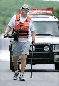Andy Mandell, director ejecutivo de una organización que lucha contra la diabetes, en una caminata en New Hampshire. Mandell, quien se hace llamar Mr. Diabetes, ha recorrido todo el perímetro de Estados Unidos para alertar a la gente de los peligros de la enfermedad que lo dejó discapacitado