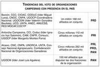 Por primera vez desde su fundación, integrantes de la Confederación Nacional Campesina (CNC) y otras seis organizaciones que durante décadas habían votado en forma homogénea en favor del PRI romperán con esa "tradición".