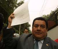 Un agente del Ministerio Público muestra la notificacion de detención firmada por el fiscal Ignacio Carrillo Prieto y Luis Echeverría