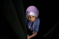 En Teherán, entre dos mujeres iraníes, una niña atiende una ceremonia religiosa en memoria de Fátima, hija del profeta Mahoma