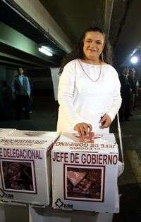 La candidata a jefa de Gobierno del Distrito Federal, Beatriz Paredes Rangel, de la Alianza Unidad por la Ciudad, sufragó en San Angel Inn