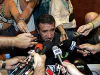 Con un atuendo de luto -camiseta y gorra negras, y gafas oscuras-, Ronaldinho, quien tiene un año sin marcar un gol para el Scracht, abordó un taxi junto a Adriano, otro astro del fallido cuarteto mágico.
