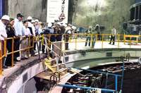 El presidente Vicente Fox supervisa las obras de la presa El Cajón