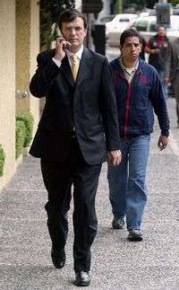 El candidato ganador a jefe de Gobierno del Distrito Federal, Marcelo Ebrard, llega al salón Covadonga, donde se reunió con líderes y militantes del PRD para definir el plan de acción en defensa del voto en favor del candidato presidencial Andres Manuel López Obrador