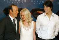 De izquierda a derecha, Kevin Spacey (Lex Luthor), Kate Bosworth (Louis Lane) y Brandon Routh (Superman), actores principales de la cinta, durante la rueda de prensa que ofrecieron ayer