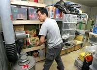 Hiroyuki Mogi demuestra en el refugio nuclear que construyó bajo su casa en Tokio un sistema para filtrar aire contaminado con radiactividad